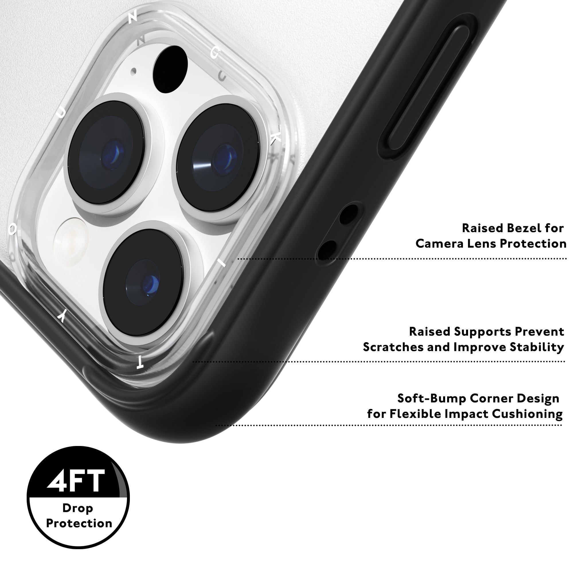 Appearance | Shock-absorbing Liquid Silicone Frame+ 2.5mm Non-Yellowing PC Backplate